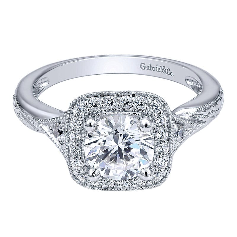 14k White Gold Diamond Halo Engagement Ring ER10913W44JJ