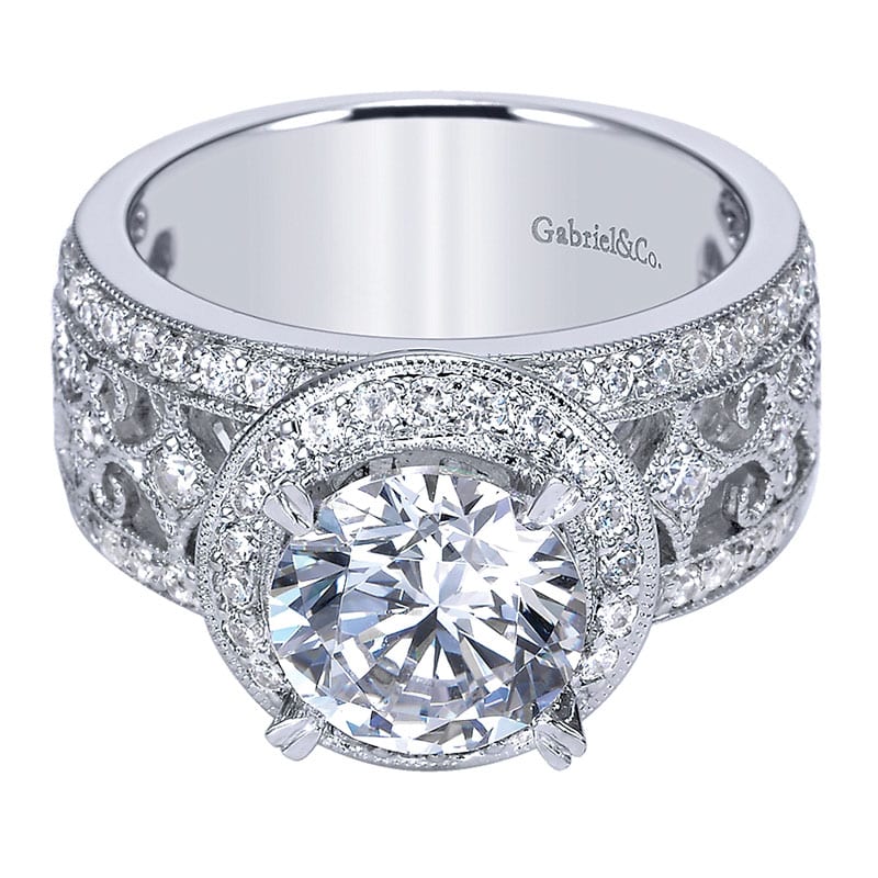 14k White Gold Diamond Halo Engagement Ring ER4170W44JJ