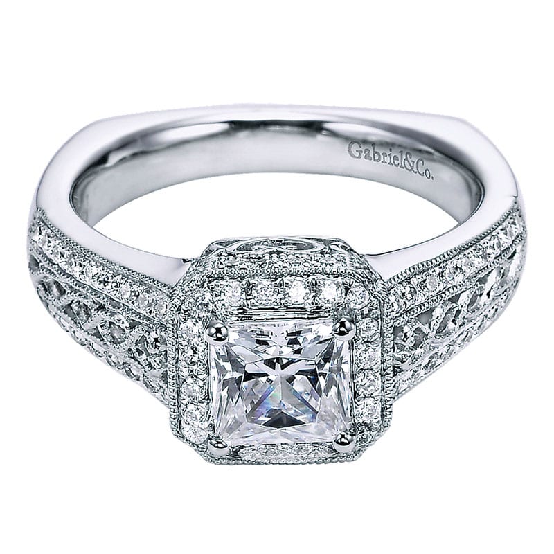 14k White Gold Diamond Halo Engagement Ring ER5949W44JJ