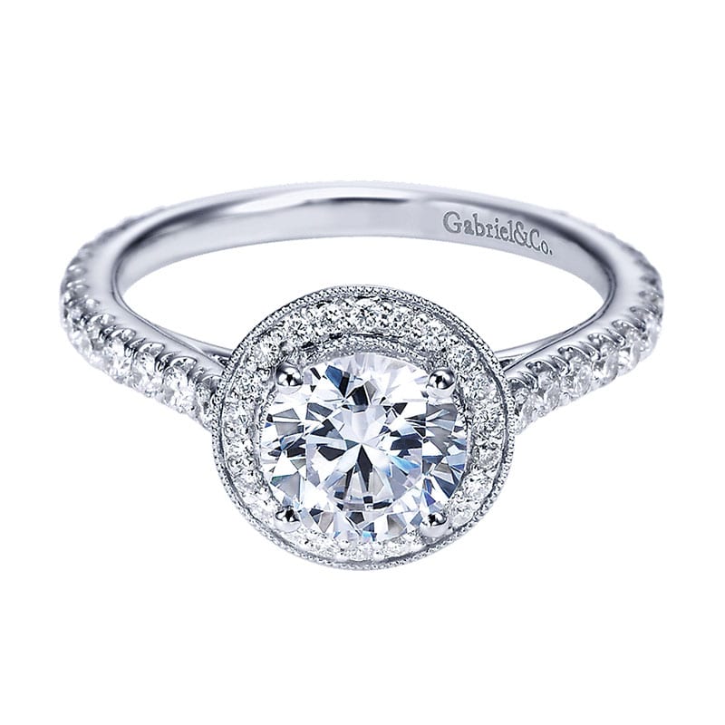 14k White Gold Diamond Halo Engagement Ring ER6971W44JJ