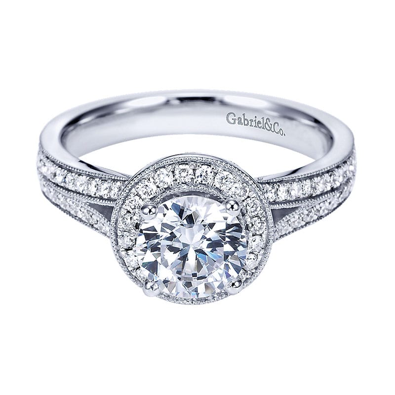 14k White Gold Diamond Halo Engagement Ring ER6983W44JJ