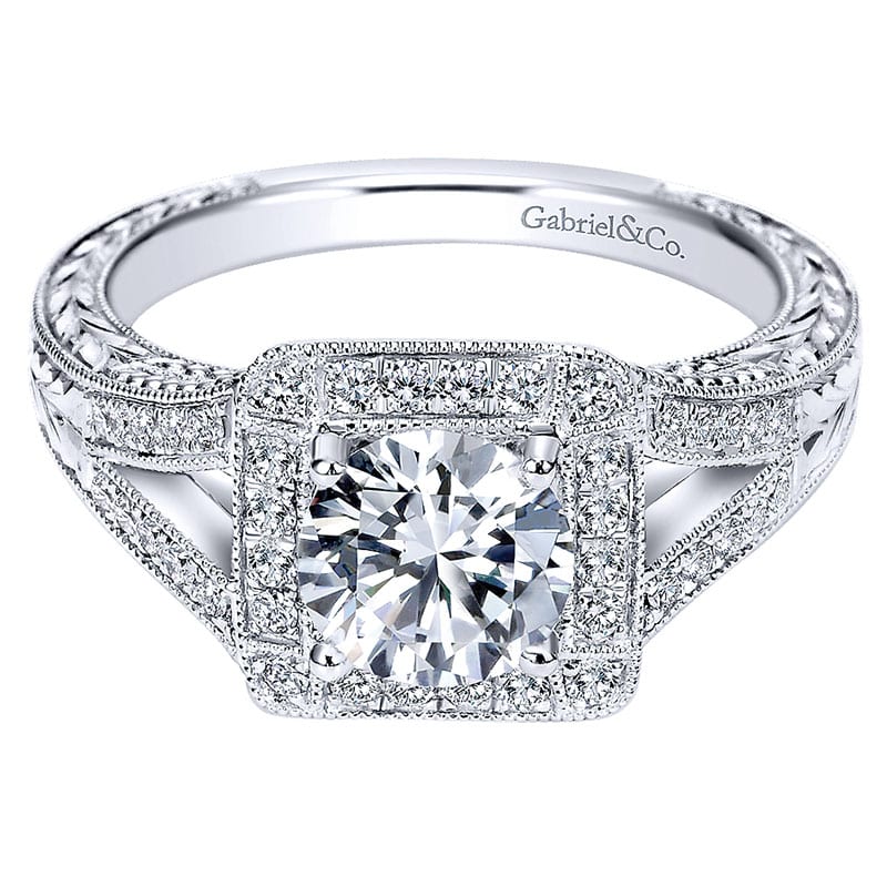 14k White Gold Diamond Halo Engagement Ring ER7255W44JJ