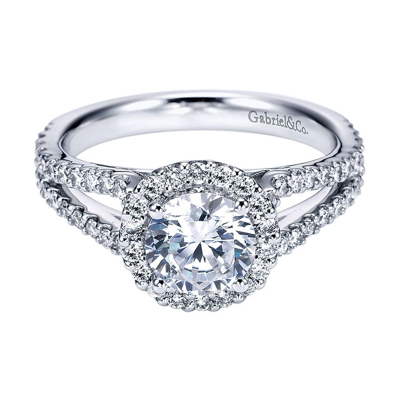 14k White Gold Diamond Halo Engagement Ring ER7257W44JJ