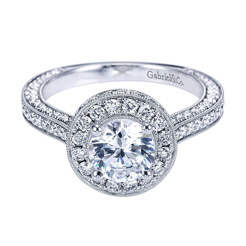 14k White Gold Diamond Halo Engagement Ring ER7258W44JJ