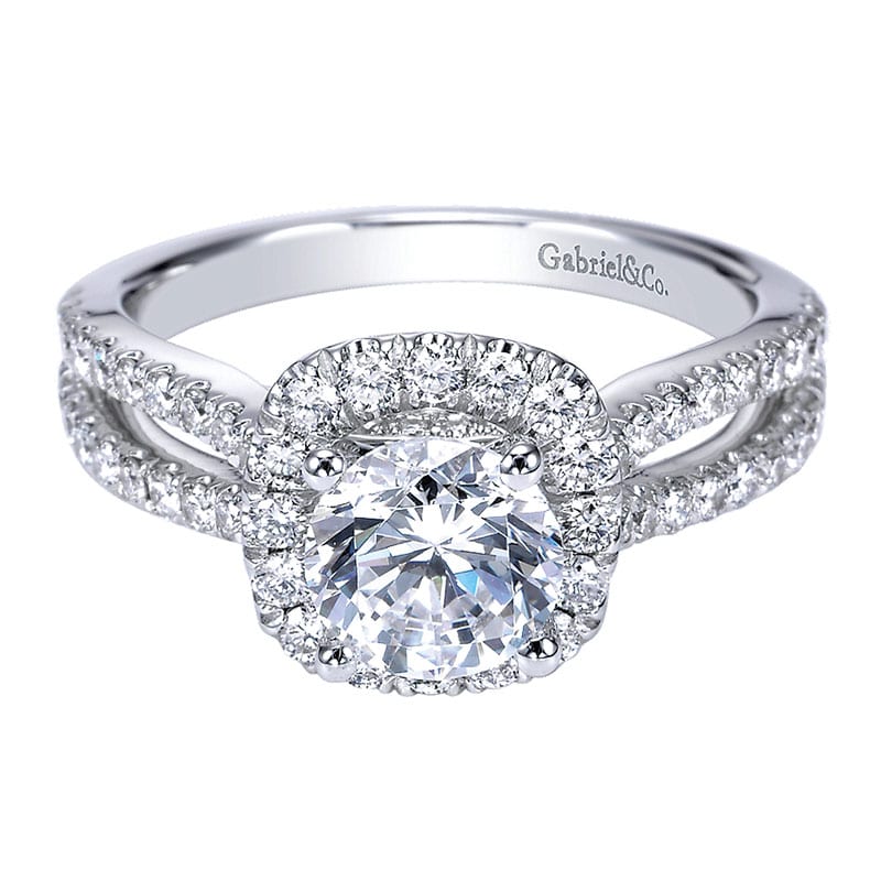 14k White Gold Diamond Halo Engagement Ring ER7487W44JJ
