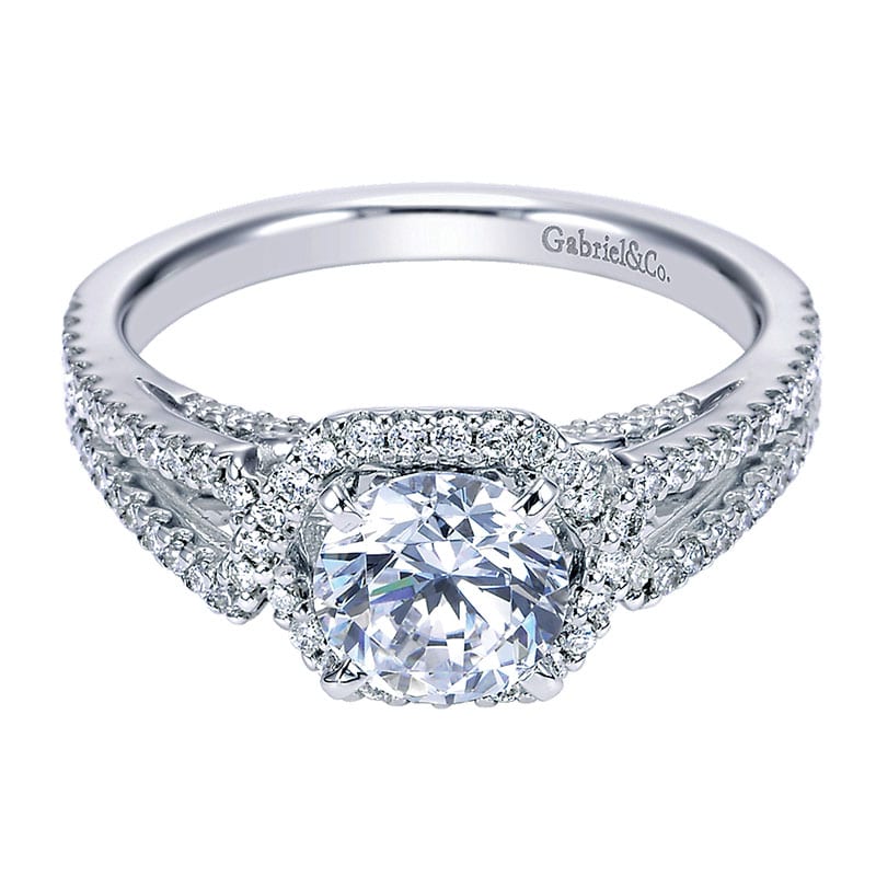 14k White Gold Diamond Halo Engagement Ring ER7545W44JJ
