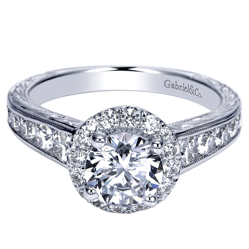 14k White Gold Diamond Halo Engagement Ring ER8533W44JJ
