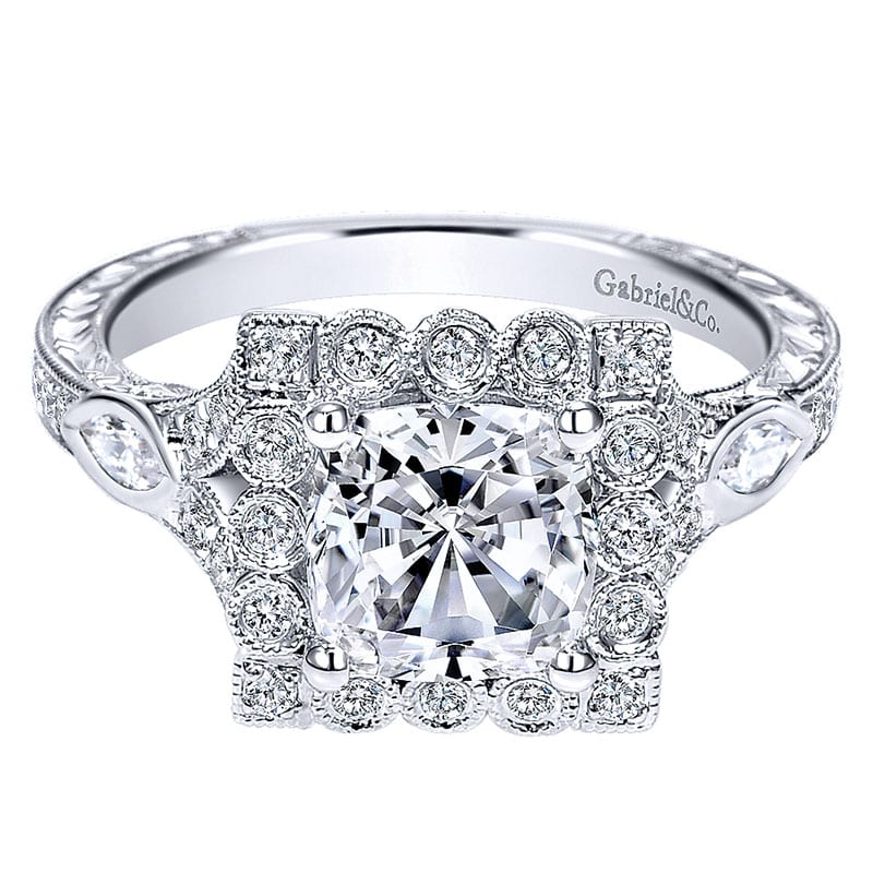 14k White Gold Diamond Halo Engagement Ring ER8837W44JJ