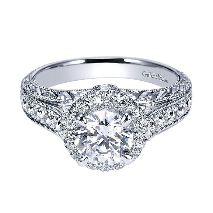 14k White Gold Diamond Halo Engagement Ring ER8878W44JJ