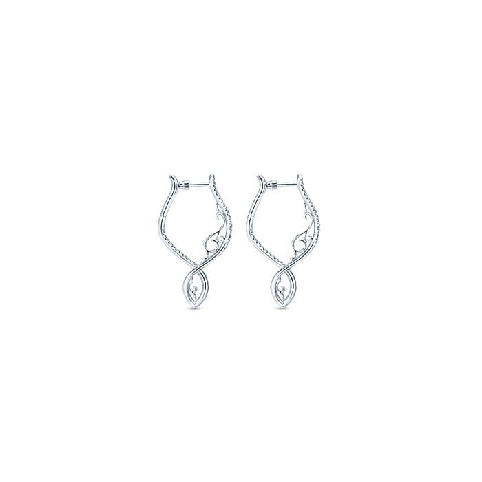 14k White Gold Diamond Intricate Hoop Earrings EG12085W45JJ