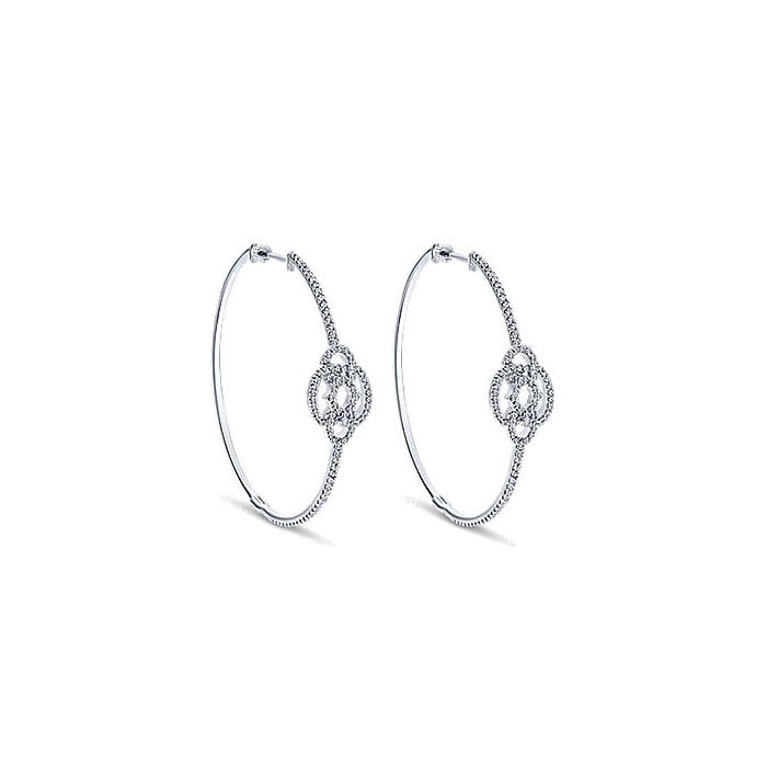 14k White Gold Diamond Intricate Hoop Earrings EG12604W45JJ