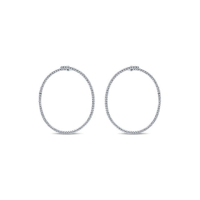 14k White Gold Diamond Intricate Hoop Earrings EG12902W45JJ