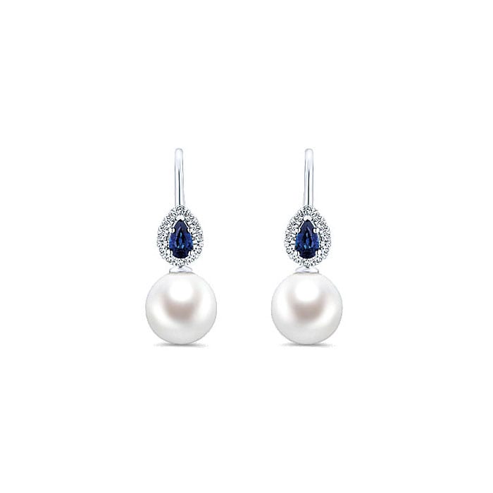 14k White Gold Diamond Multi Color Stones Drop Earrings EG13191W45MC