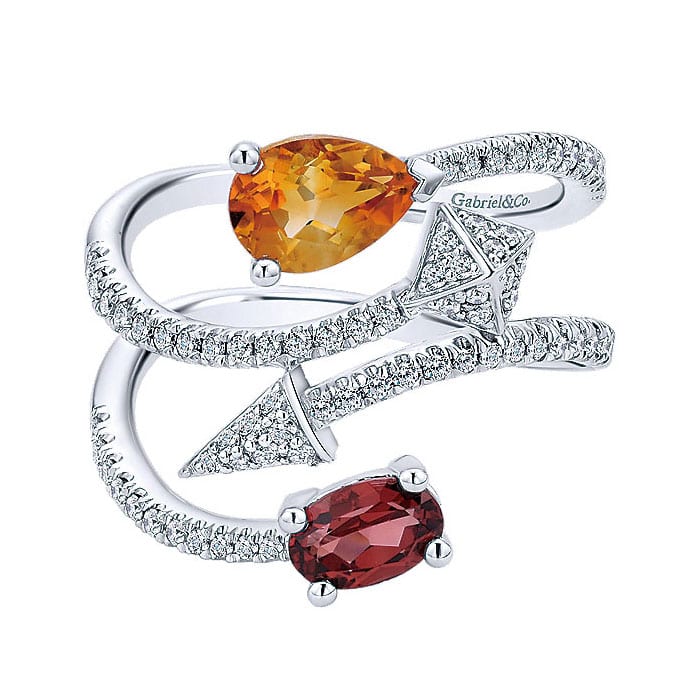 14k White Gold Diamond Multi Color Stones Fashion Ladies' Ring LR50628W45MC