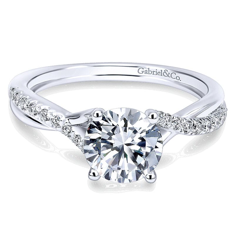14K White Gold Diamond Pave Criss Cross With Cathedral Setting 14K White Gold Engagement Ring ER11794R3W44JJ
