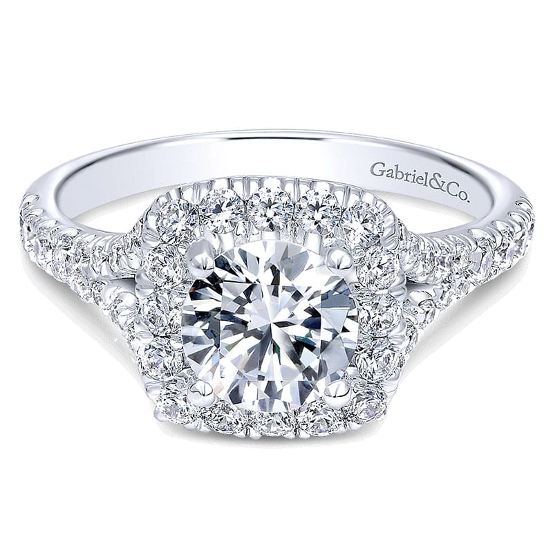 14K White Gold Diamond Pave Halo 14K White Gold Engagement Ring ER10290W44Jj