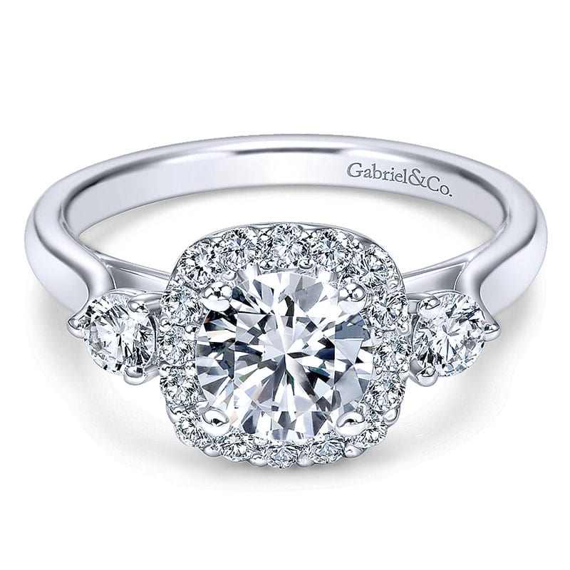 14K White Gold Diamond Pave Halo and Side Stone Setting 14K White Gold Engagement Ring ER7510W44Jj