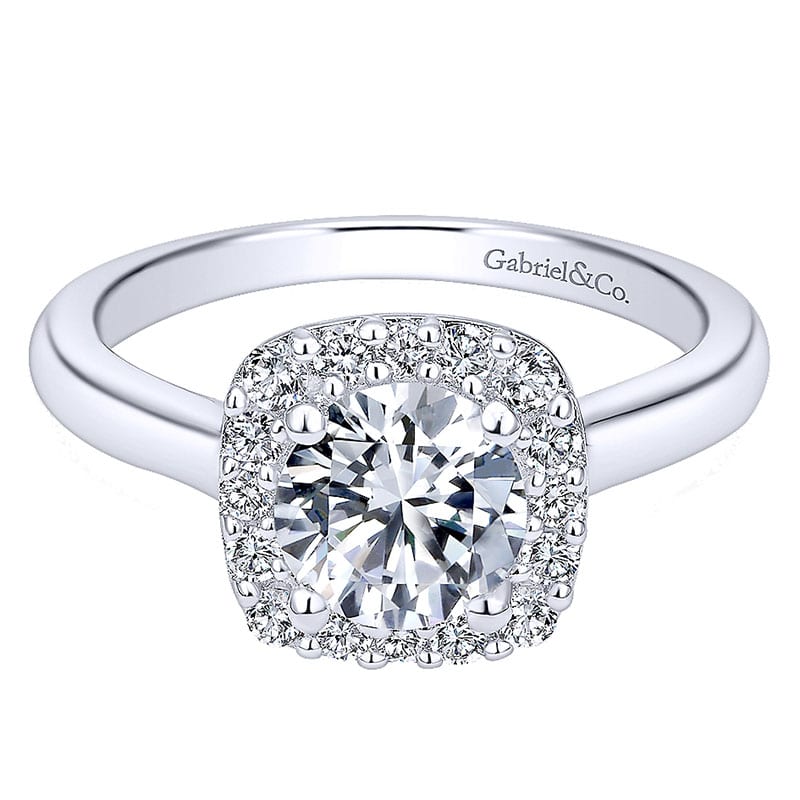 14K White Gold Diamond Pave Halo With Rounded Shank 14K White Gold Engagement Ring ER6873W44Jj
