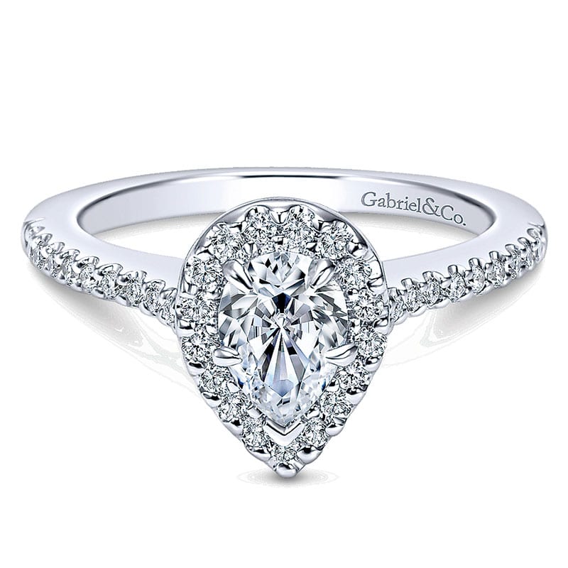 14K White Gold Diamond Pave Pear Shape Halo 14K White Gold Engagement Ring ER5828W44Jj