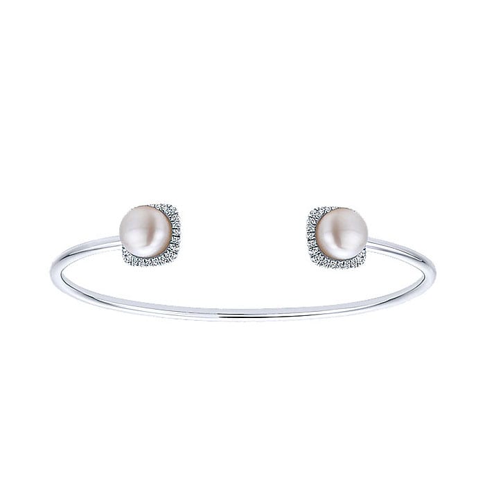 14k White Gold Diamond Pearl Bangle BG3878W45PL