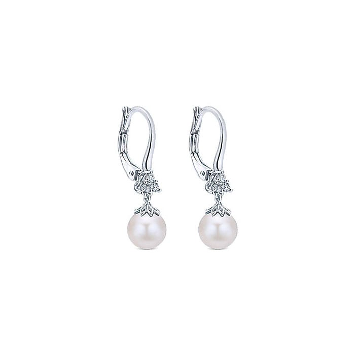 14k White Gold Diamond Pearl Drop Earrings EG12322W45PL