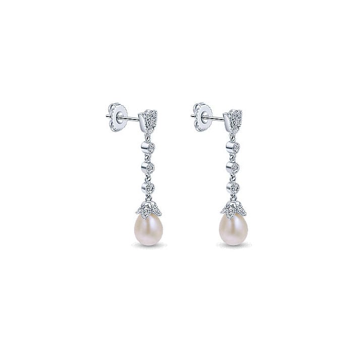 14k White Gold Diamond Pearl Drop Earrings EG9727W45PL