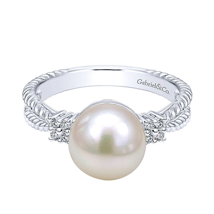 14k White Gold Diamond Pearl Fashion Ladies' Ring LR5724W45PL