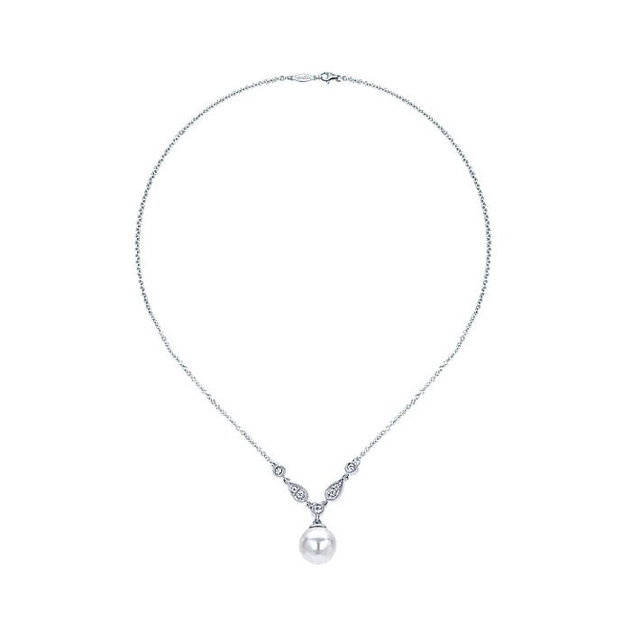14k White Gold Diamond Pearl Fashion Necklace NK1420W45PL