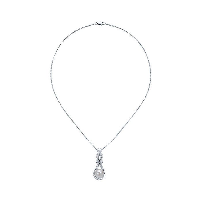 14k White Gold Diamond Pearl Fashion Necklace NK1777W44PL