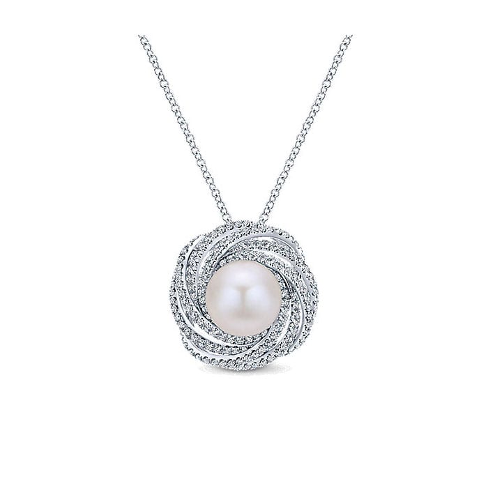 14k White Gold Diamond Pearl Fashion Necklace NK5091W45PL