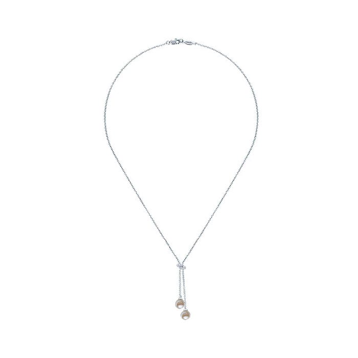 14k White Gold Diamond Pearl Lariat Necklace NK1418W45PL