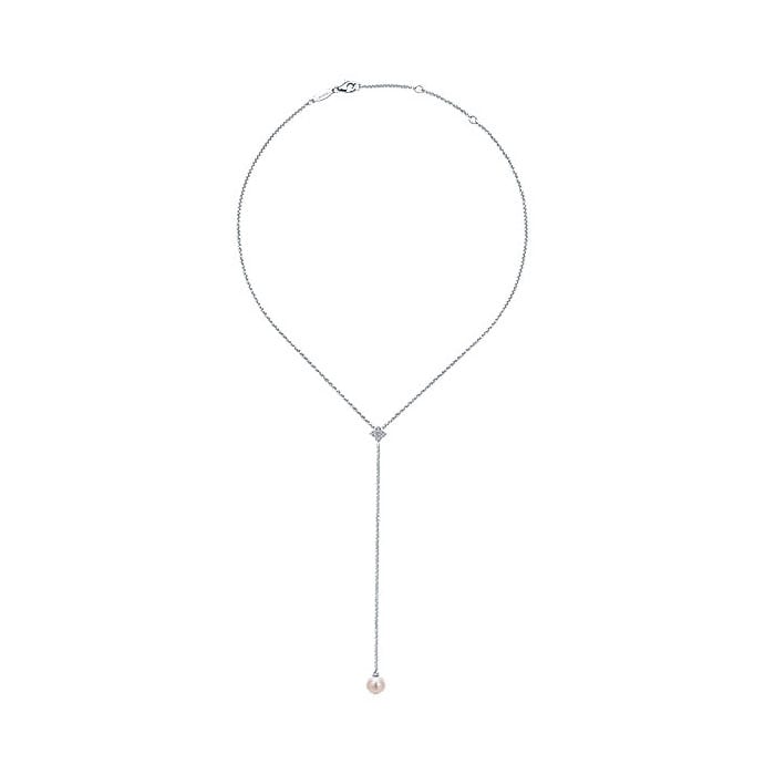 14k White Gold Diamond Pearl Y Knots Necklace NK5395W45PL