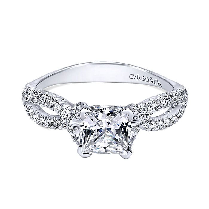 14K White Gold Diamond Princess Cut Criss Cross 14K White Gold Engagement Ring ER11887S4W44Jj