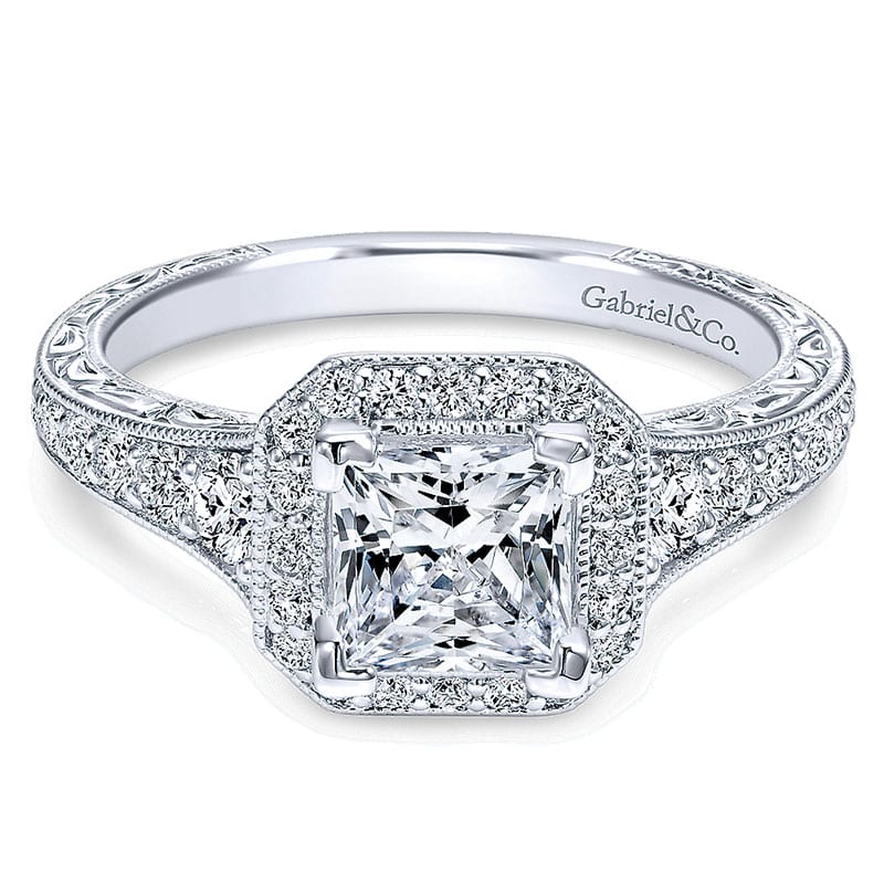 14K White Gold Diamond Princess Cut Halo With Channel Setting 14K White Gold Engagement Ring ER11793