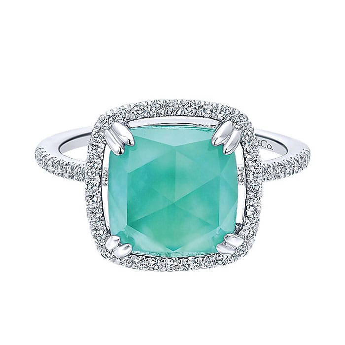 14k White Gold Diamond Rock Crystal & White Mother Pearl & Green Onyx Fashion Ladies' Ring LR50946W45MG