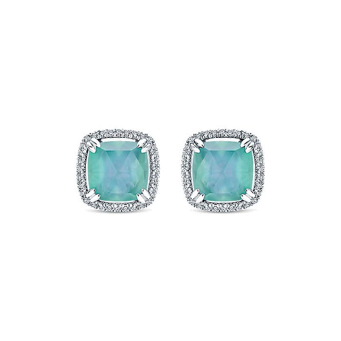 14k White Gold Diamond Rock Crystal & White Mother Pearl & Green Onyx Stud Earrings EG13010W45MG