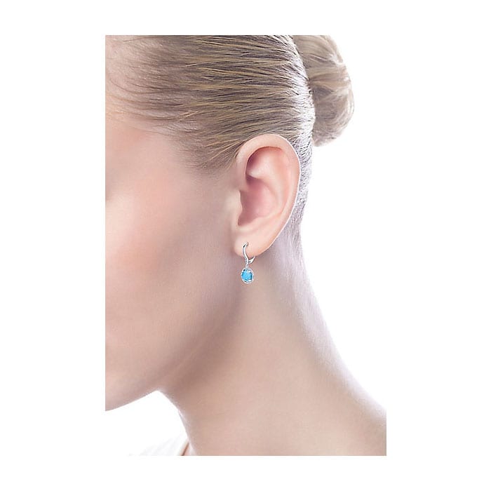 14k White Gold Diamond Rock Crystal & White Mother Pearl & Turquoise Drop Earrings EG12976W45MT