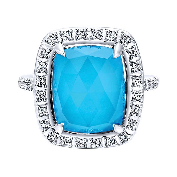 14k White Gold Diamond Rock Crystal&turquoise Fashion Ladies' Ring LR50972W45XT
