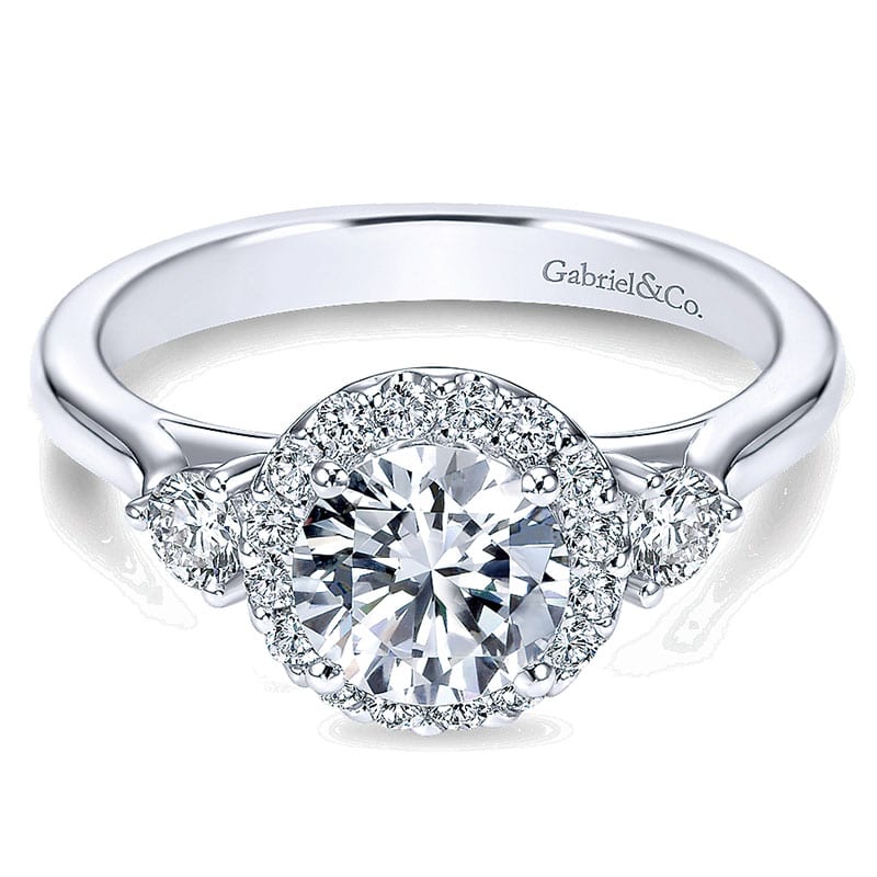14K White Gold Diamond Round Pave Halo and Side Stone Setting 14K White Gold Engagement Ring ER7482W