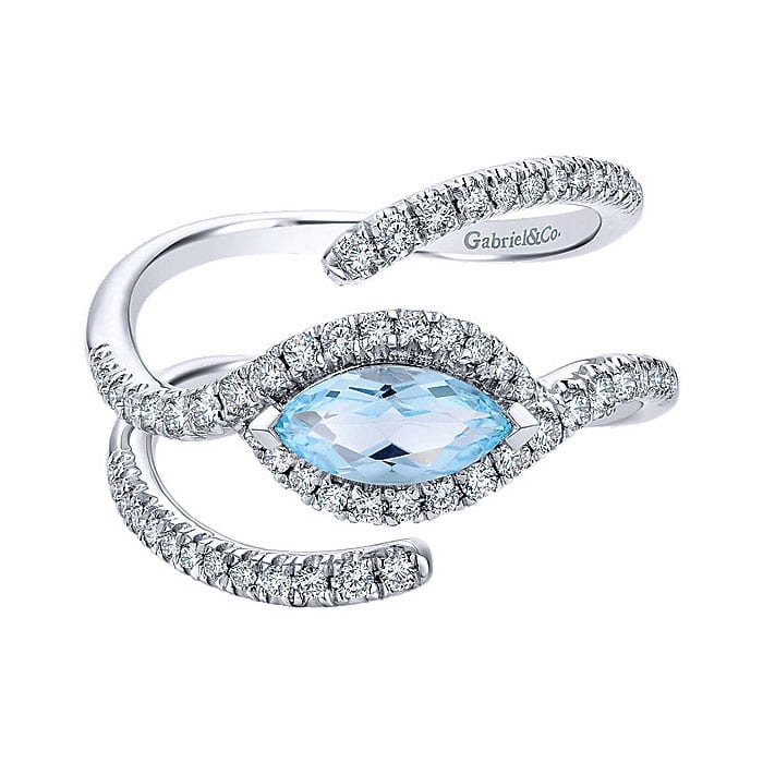 14k White Gold Diamond Sky Blue Topaz Fashion Ladies' Ring LR50625W45LB