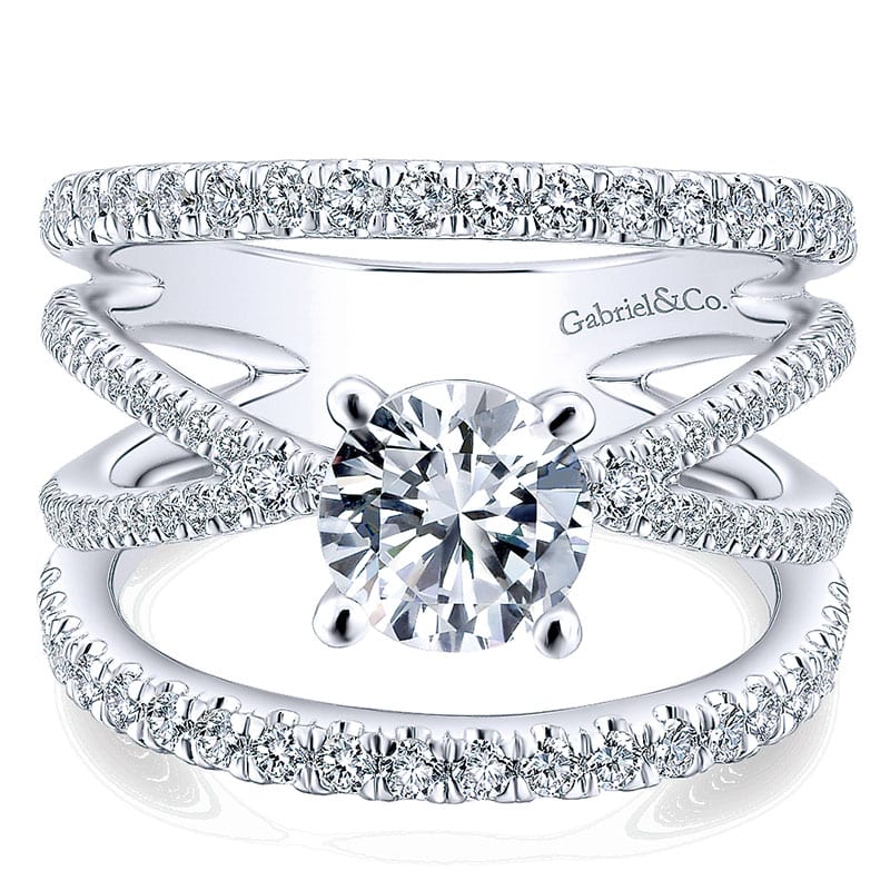 14K White Gold Diamond Split Shank 14K White Gold Engagement Ring ER12819R4W44Jj