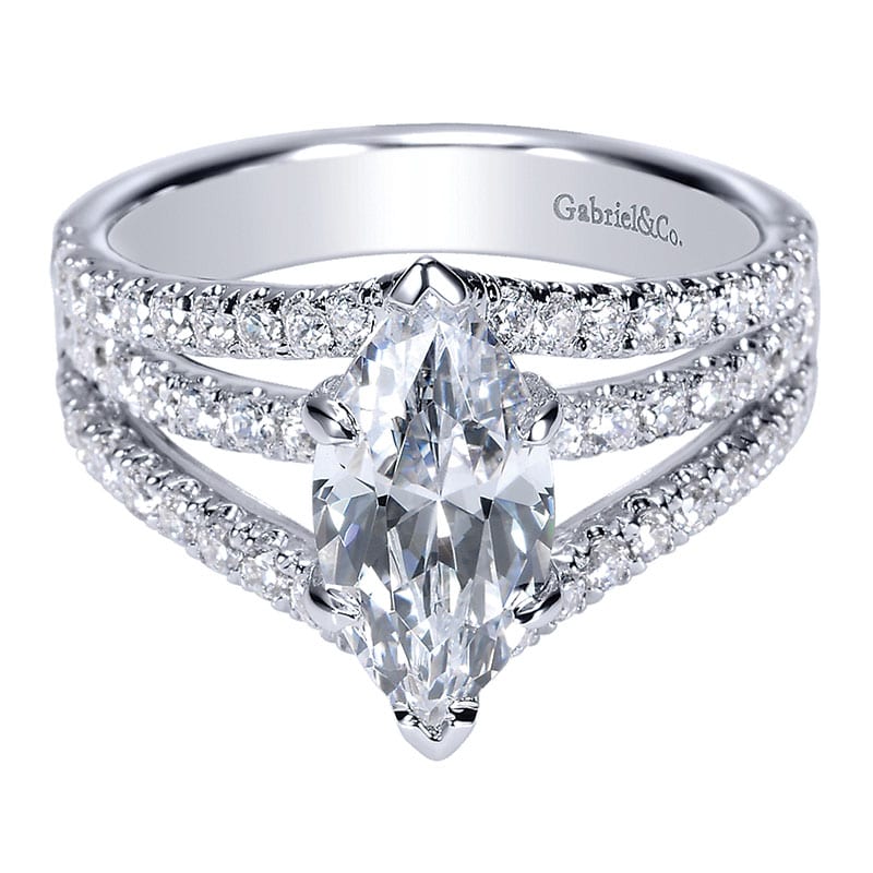 14K White Gold Diamond Split Shank 14K White Gold Engagement Ring ER8902W44Jj