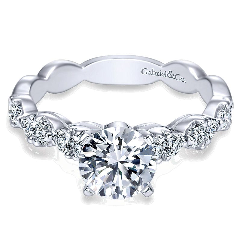 14K White Gold Diamond Straight Cascading Pave Setting 14K White Gold Engagement Ring ER3990W44Jj