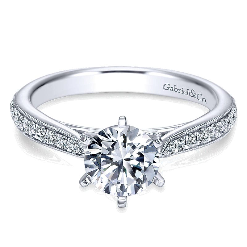 14K White Gold Diamond Straight Channel and Milgrain 14K White Gold Engagement Ring ER6687W44Jj