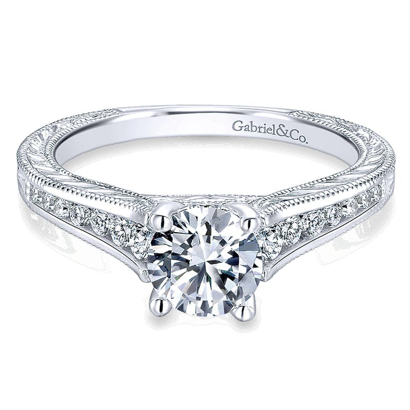 14K White Gold Diamond Straight Channel and Milgrain With Cathedral Setting 14K White Gold Engagemen