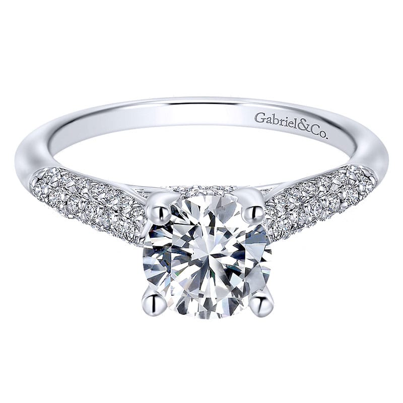 14K White Gold Diamond Straight Micropave With Cathedral Setting 14K White Gold Engagement Ring ER12327R4W44JJ