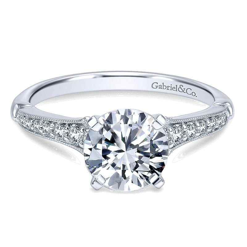 14K White Gold Diamond Straight Milgrain Channel 14K White Gold Engagement Ring ER11746R4W44Jj