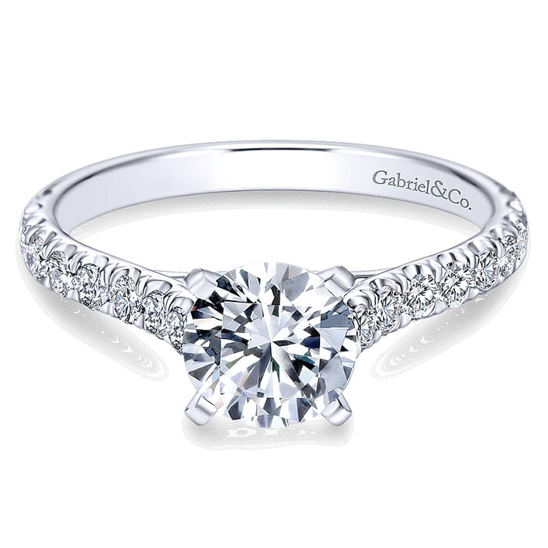 14K White Gold Diamond Straight With Bold Pave Shank 14K White Gold Engagement Ring ER7225W44Jj