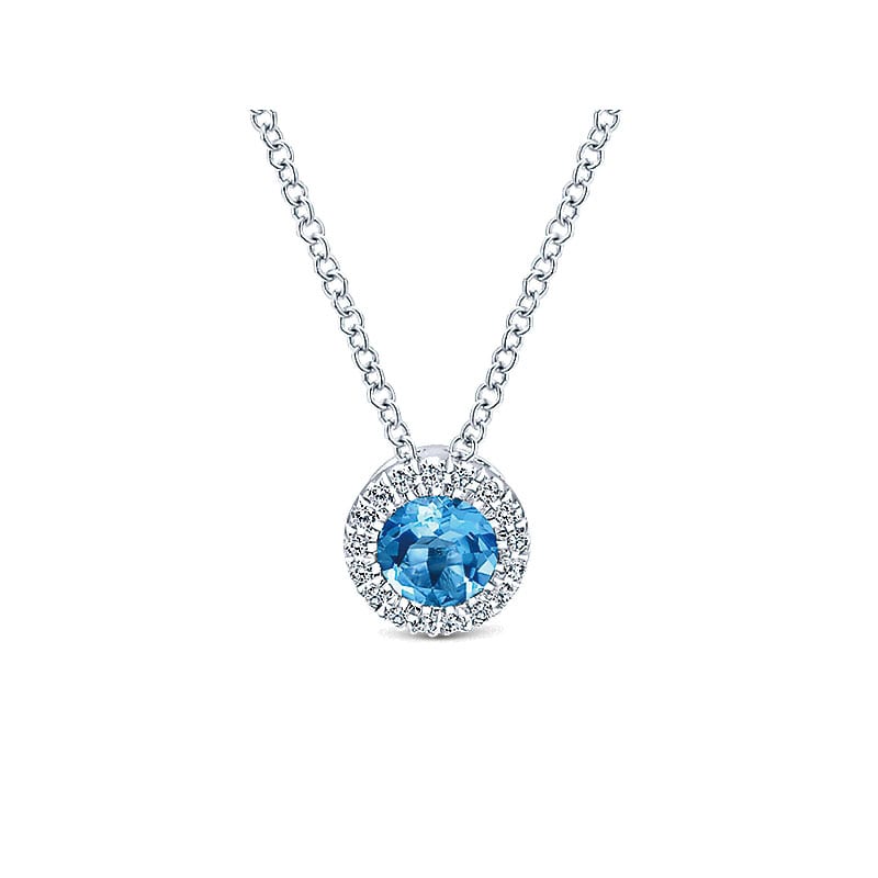 14k White Gold Diamond Swiss Blue Topaz Fashion Gaby Necklace NK2824W45BT