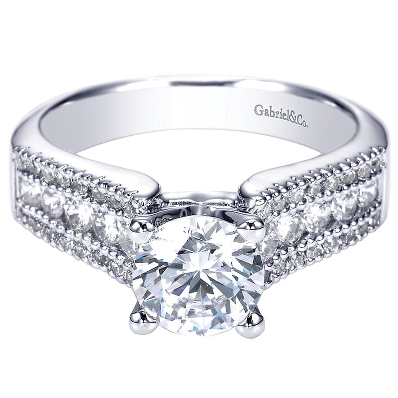 14K White Gold Double Pave European Shank Diamond 14K White Gold Engagement Ring ER3952W44Jj